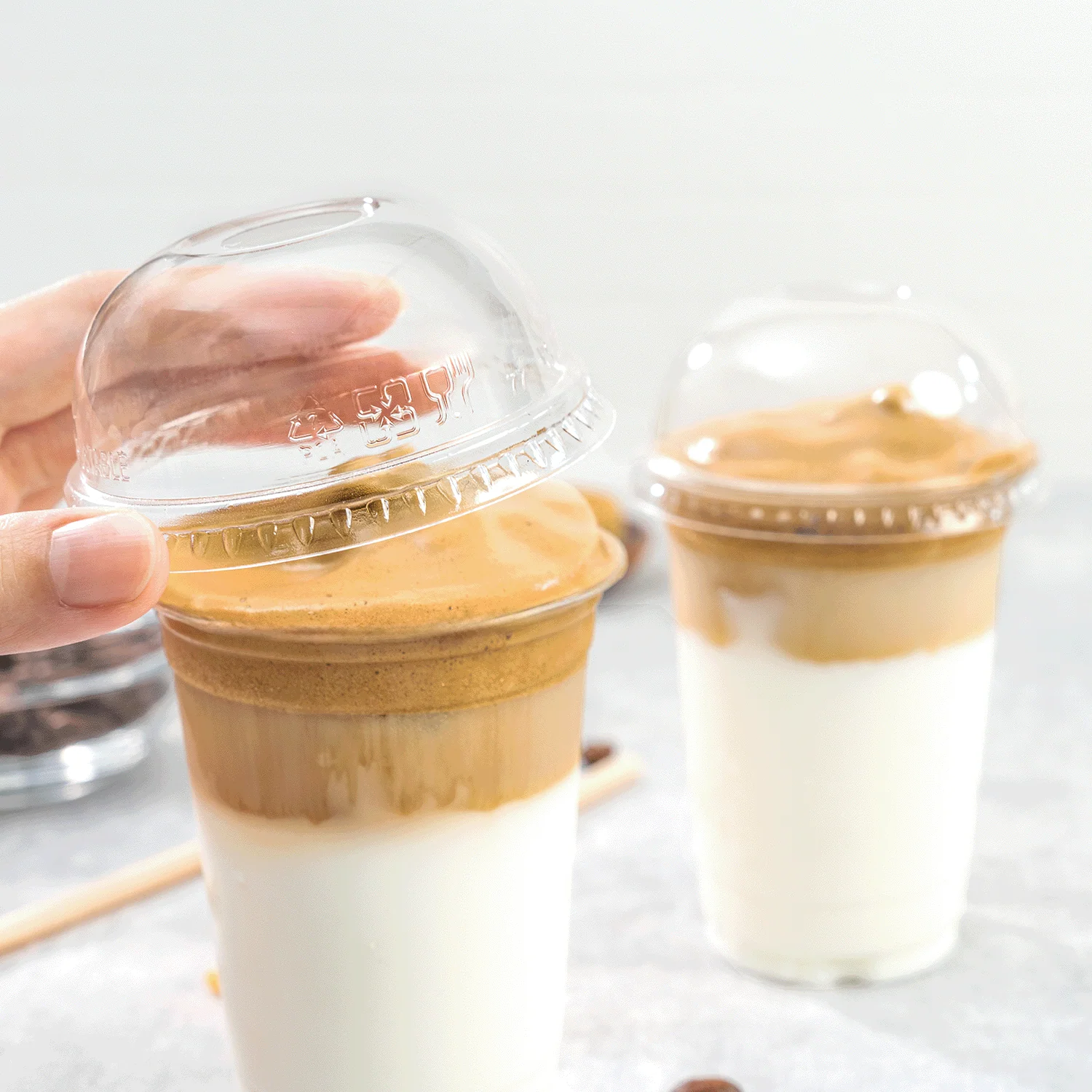 Our 10 oz PET Cup Dome Lid is designed to securely fit 10 oz PET cups, providing extra height to accommodate toppings and whipped cream. Made from high-quality, food-grade clear PET plastic, it offers excellent durability, a tight fit, and clear visibility of contents. Ideal for smoothies, desserts, and specialty beverages, making it perfect for cafés, juice bars, and food service businesses.