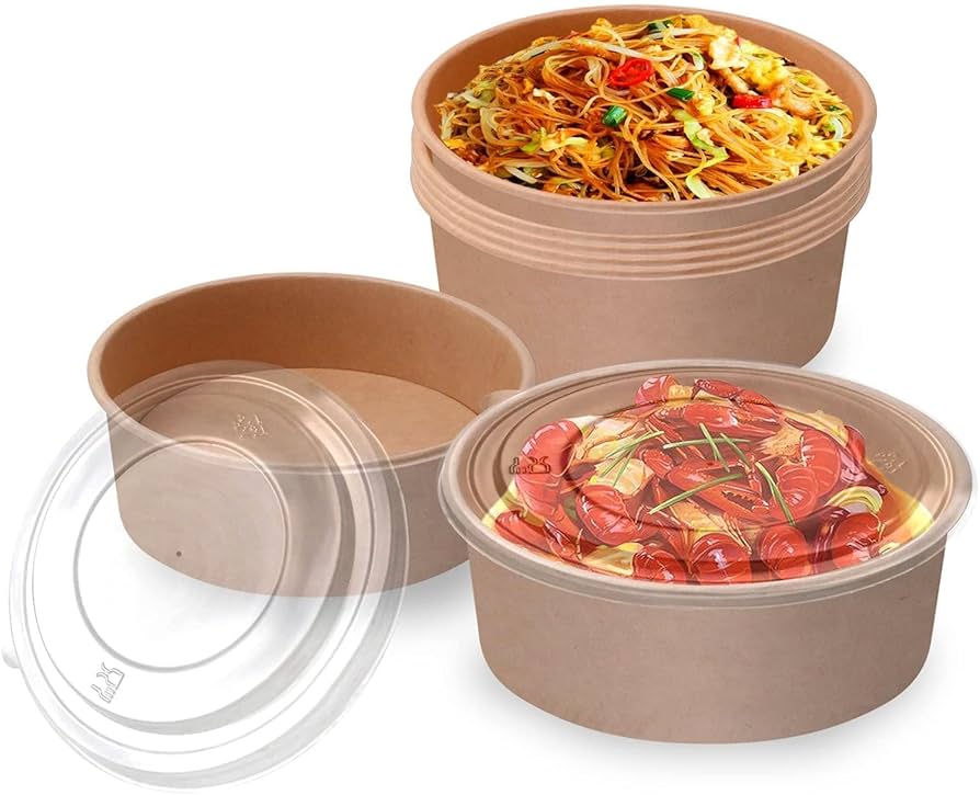 KRAFT PAPER BOWL AND LIDS, 1300ml-1500ml KRAFT BOWL PLASTIC LID