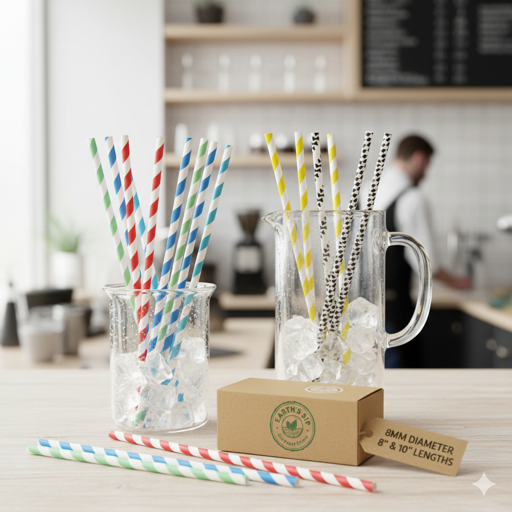 Our 8mm Paper Straws, available in 8″ and 10″ lengths, are an eco-friendly solution for enjoying cold beverages such as juices, smoothies, milkshakes, and iced coffee. Made from biodegradable, food-safe paper, these straws are strong, convenient, and environmentally responsible, making them perfect for cafes, restaurants, events, and home use.